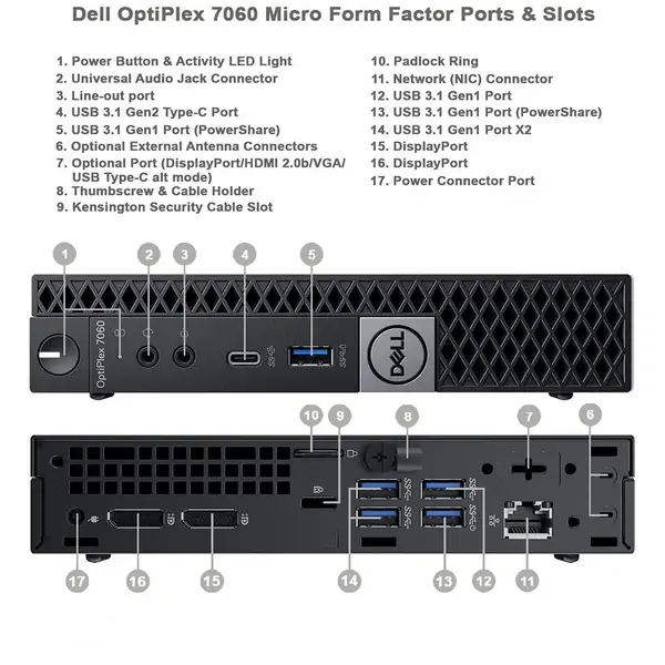 Le PC de bureau DELL Optiplex 7060 uSFF Tiny dispose de deux DisplayPort une gestion multi-écrans