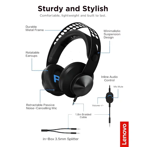 Confortable, léger et durable, le H300 est doté d’un bandeau suspendu unique, d’un cadre entièrement métallique robuste et élégant et de l’esthétique distinctive de la gamme pour joueurs Legion.